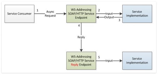 WS-Addressing headers and then automatically forwards the reaction SOAP